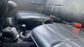 The cab features a bench seat upholstered in black leather along with a black dashboard, door panels, and carpeting. Amenities include a Pioneer AM/FM cassette player, a panel with exterior light switches, a security system, a padded roll bar, a manual sunroof, and a cabin heater.