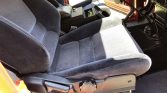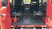 The cabin features front seats upholstered in gray cloth and rear side-facing jump seats upholstered in gray vinyl. Equipment includes a cabin heater, a Tuffy locking center console, and a Pioneer AM/FM/CD stereo.