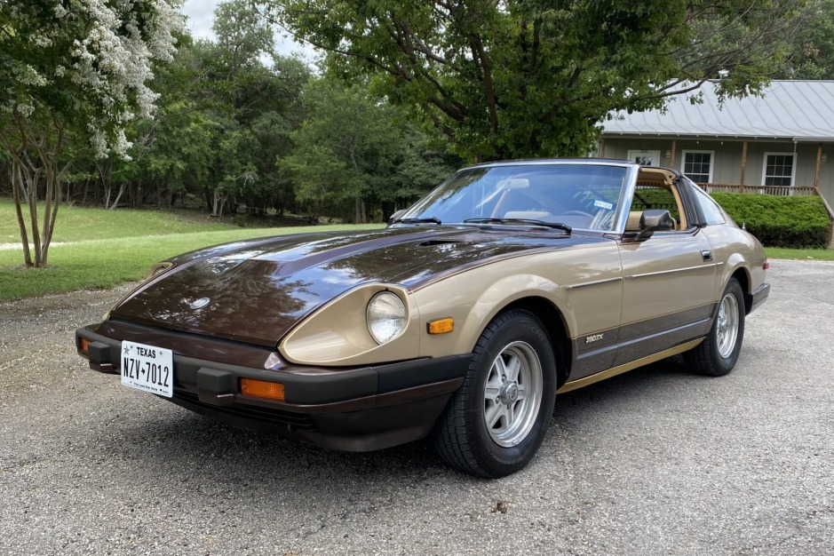 This 1983 Datsun 280ZX is finished in gold and brown over tan cloth upholstery, and power is provided by a fuel-injected 2.8-liter inline-six paired with a five-speed manual transaxle. Equipment includes a T-bar roof with removable panels, rear window louvers, a vented hood with a NACA duct, air conditioning, and a factory stereo. The car was registered in Virginia before being relocated to Texas where it was acquired by the seller in February 2021.
