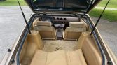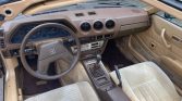The seating surfaces are upholstered in tan cloth with matching door panels and carpets contrasted by a brown dashboard and center console. Amenities include air conditioning, a factory cassette stereo, cruise control, and power windows.