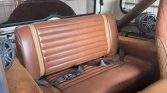 The high-back front bucket seats and rear bench seat are upholstered in Nutmeg vinyl that extends to the door panels. A locking center console has been retrofitted, and appointments include air conditioning, a padded roll bar, a passenger grab bar, and a CD stereo linked to aftermarket speakers.