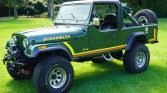 This 1983 Jeep CJ-8 Scrambler is finished in green with a black interior and is powered by a replacement 304ci V8 paired with a T176 four-speed manual transmission and a Dana 300 two-speed transfer case. Features include LED headlights, a Smittybilt winch, dual steering stabilizers, an onboard air compressor, a cab hardtop, half doors with soft uppers, and a swing-away tire carrier. Work under current ownership is said to have included replacement of the brake lines, fuel…