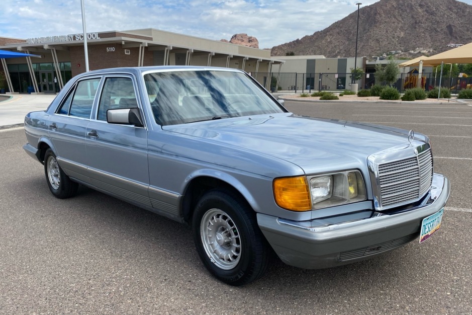 This 1983 Mercedes-Benz 300SD was reportedly purchased new by the seller’s cousin and subsequently acquired by the seller in 1989. The car is finished in Silver Blue Metallic over blue leather upholstery, and power is provided by a 3.0-liter turbodiesel inline-five paired with a four-speed automatic transmission. Equipment includes a power-operated sunroof, automatic climate control, power-adjustable front seats, a power antenna, and a JVC CD stereo.