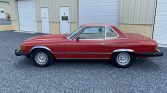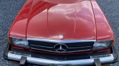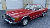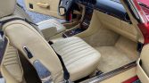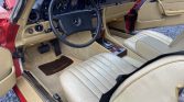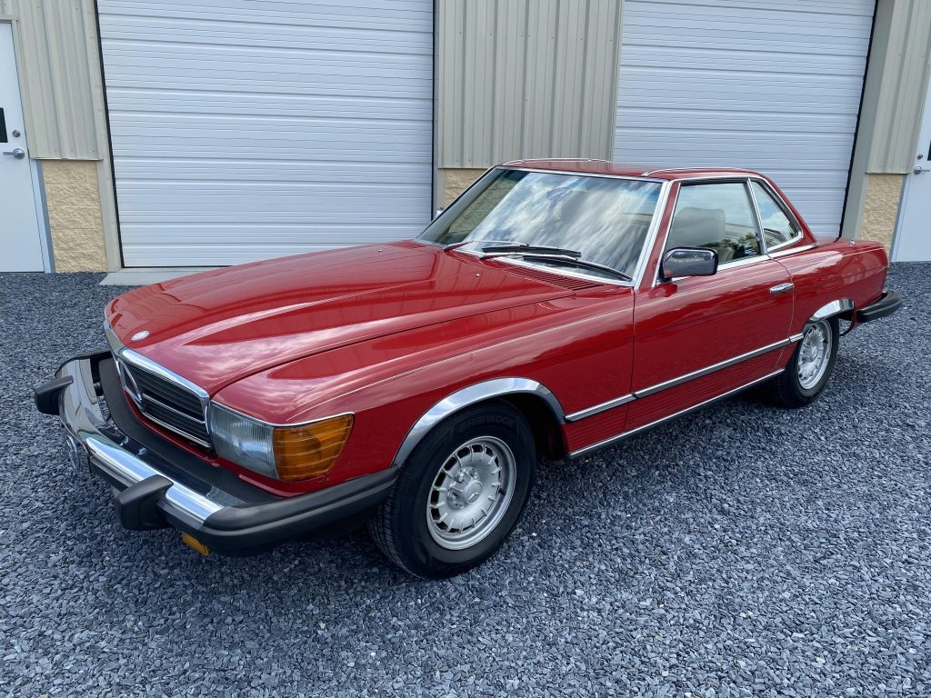 This 1983 Mercedes-Benz 380SL was acquired by the current owner in 1991 and is finished in Signal Red over beige leather. The car is powered by a 3.8-liter V8 paired with a four-speed automatic transmission, and additional equipment includes a removable hardtop, a rear seat, European-market headlights, 14″ Bundt wheels, automatic climate control, and a Blaupunkt cassette stereo.