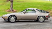 This 1983 Porsche 928S is finished in Platinum Metallic over Grey Beige leather and is powered by a 4.7-liter V8 mated to a five-speed manual transaxle. Equipment includes a powered sunroof, pop-up headlights, fog lights, power-adjustable front seats, 16″ Gullideckel wheels, automatic climate control, cruise control, and an Alpine head unit.