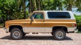 This 1984 Chevrolet K5 Blazer Silverado is finished in two-tone gold and white over a tan cloth interior, and power is provided by a 350ci V8 linked with a four-speed automatic transmission and a dual-range transfer case. Additional equipment includes a removable hardtop, a receiver hitch, air conditioning, an AM/FM cassette stereo, and 15″ Rally wheels. The truck spent time in California and Nevada, where it was reportedly refurbished under previous ownership before being acquired by the…