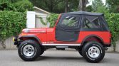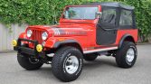 This 1984 Jeep CJ-7 is finished in red over black and is powered by an AMC 304ci V8 paired with a three-speed automatic transmission. The truck reportedly spent time in Arizona before relocating to Florida where it was acquired by the seller in 2017. Work performed under current ownership included replacement of the front and rear axle gears, a hydroboost brake conversion, and the installation of an Old Man Emu 4″ lift kit, 15″ aluminum wheels, a dual exhaust system, LED headlights, and a Pioneer Bluetooth stereo with aftermarket speakers.