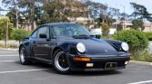 This 1984 Porsche 911 Carrera coupe was optioned with the M491 “Turbo Look” package, which added front and rear spoilers as well as wider rear bodywork. Finished in black over black leather upholstery, the car is powered by a 3.2-liter flat-six paired with a 915 five-speed manual transaxle and an optional limited-slip differential. Equipment includes 16″ Fuchs alloy wheels with body-color centers as well as a power-operated sunroof, front sport seats, cruise control, a MOMO Steering Wheel, air…