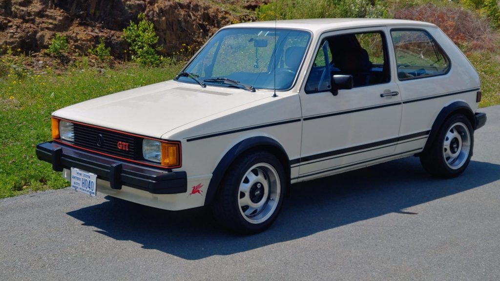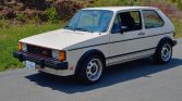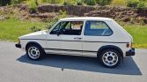 This 1984 Volkswagen Rabbit GTI is finished in Cashmere White over Midnight Blue cloth upholstery and powered by a replacement 1.8-liter inline-four paired with a five-speed manual transaxle. Modifications include a Neuspeed throttle body, a modified intake manifold, H&R springs, 15″ ATS Cup wheels, a stainless-steel Raceland header, and a Techtonics Tuning 2.25″ exhaust system with a Borla muffler. The car spent time in British Columbia prior to the seller’s 2015 acquisition and relocation to Nova Scotia, and it now shows under 225k kilometers (~140k miles).