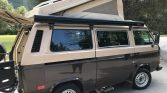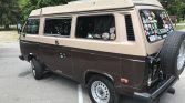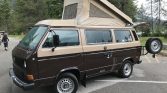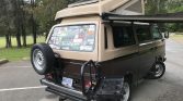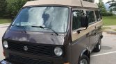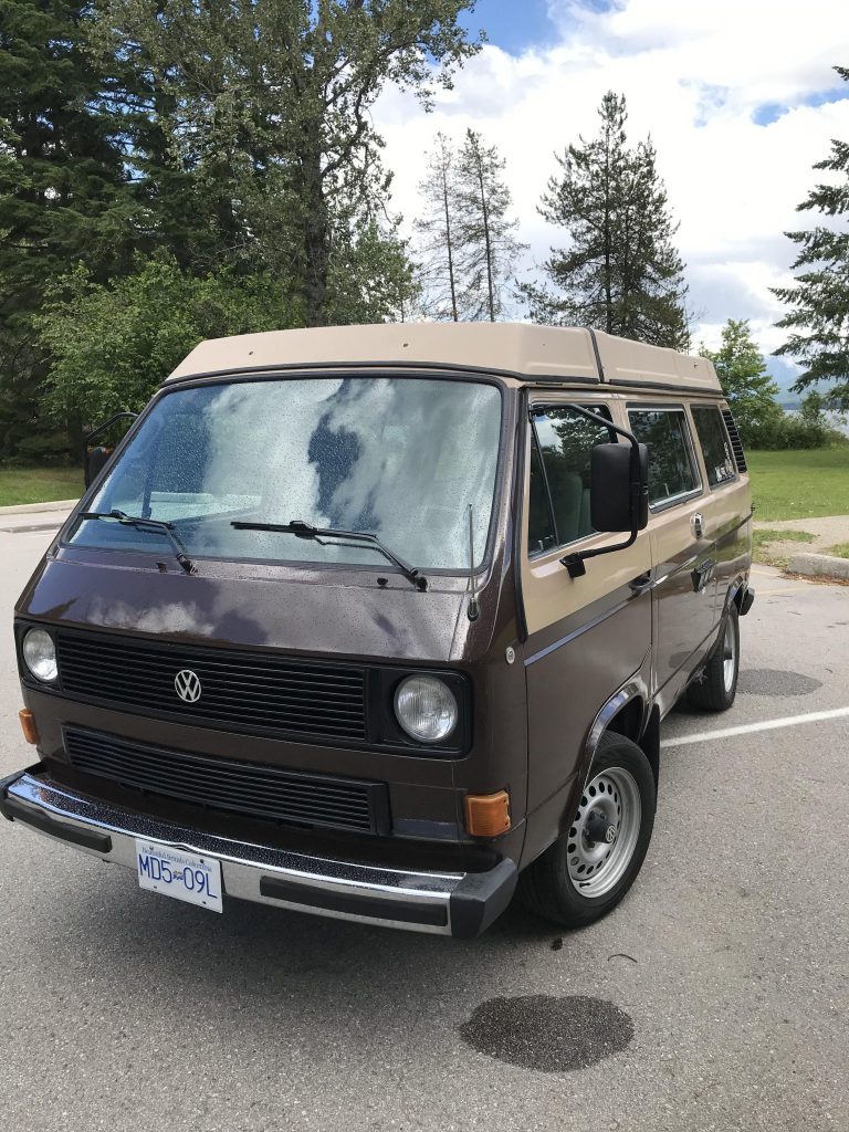 This 1984 Volkswagen Vanagon Westfalia Wolfsburg edition is a US-market example that was imported into British Columbia and subsequently acquired by the current owner in 2011. The van is finished in two-tone brown and tan over brown and is powered by a 2.5-liter Subaru EJ25 flat-four paired with a three-speed automatic transaxle. Equipment includes a pop-up camper, 16″ steel wheels, power steering, a roof-mounted solar panel, a rear tire carrier with a swing-away table, a kitchenette, and a deep cycle auxiliary battery system. Service performed under current ownership is said to have included rebuilding the transmission, and replacing the engine block, timing belt, water pump, sway bar, and suspension bushings.