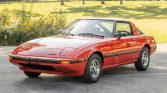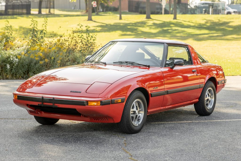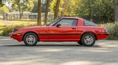 This 1985 Mazda RX-7 GS was delivered new to Larry’s Mazda of Randallstown, Maryland, and was acquired by the seller in September 2020. The car is finished in Sunrise Red over gray cloth and powered by a 1.1-liter Wankel rotary engine paired with a five-speed manual transmission. Additional equipment includes retractable headlamps, 13″ alloy wheels, a retractable antenna, and an AM/FM/cassette stereo.