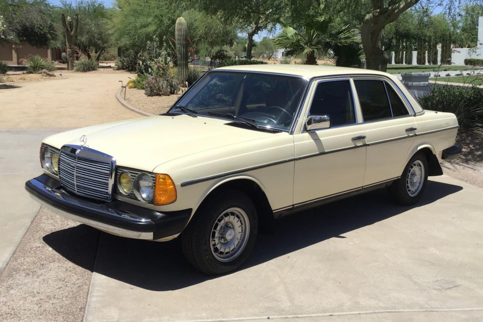 This 1985 Mercedes-Benz 300D Turbo is finished in ivory over tan MB-Tex and powered by a 3.0-liter turbodiesel inline-five mated to a four-speed automatic transmission. Features include 14″ Bundt wheels, tinted windows, a power sunroof, automatic climate control, power windows, cruise control, and a Alpine CD stereo. The car was first registered in New Jersey and was recently acquired in Arizona by the seller, who performed an oil change in preparation for the sale.