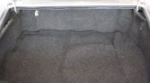 The interior features seats upholstered in black with matching door panels and carpets. The dashboard is accented with a woodgrain fascia, and amenities include air conditioning, a digital clock, electric windows, an Alpine CD stereo with Bluetooth, and a locking storage compartment behind the front seats.
