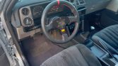 This 1985 Corolla GT-S is powered by a retrofitted supercharged 1.6-liter 4A-GZE inline-four paired with a five-speed manual transmission and is finished in silver over gray cloth and black vinyl upholstery. Modifications include an aftermarket air intake and exhaust system, adjustable lowered suspension, 14″ Watanabe-style alloy wheels, an Autopower roll bar, an OMP steering wheel, and a Kenwood CD stereo. Additional equipment includes pop-up headlights, a rear lip spoiler, black bumper covers, and sport seats.