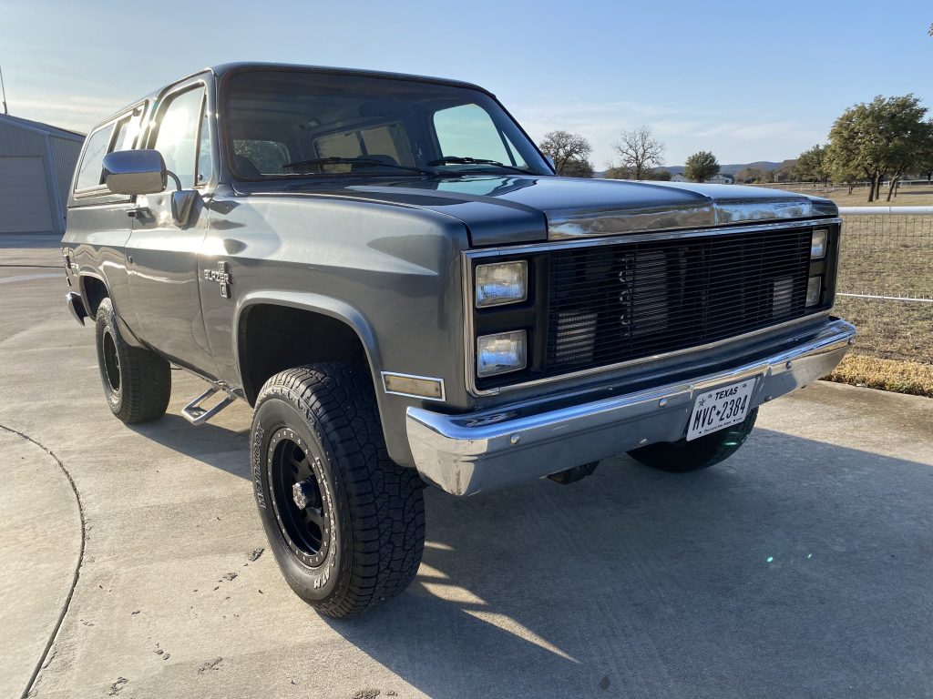 This 1986 Chevrolet K5 Blazer is finished in gray over gray cloth and has been registered in Texas since new. The truck is powered by a 350ci V8 paired with a four-speed automatic transmission and a dual-range transfer case. Additional equipment consists of the Silverado equipment package, air conditioning, a folding rear seat, 16″ Pro Comp wheels, a removable hardtop, a receiver hitch, an electric tailgate window, and an aftermarket Clarion head unit. The seller acquired the truck in February 2020, reportedly from the original owner, and subsequent service is said to have included engine and transmission refurbishment, overhauling the air conditioning system, and replacing the fuel pump, ignition switch, starter, and ball joints.