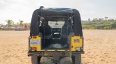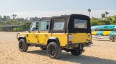 The truck is said to have been repainted in satin yellow during previous ownership. Features include a removable black soft top, LED headlamps and turn signals, a Puma-style hood, aftermarket triple horns, a hitch receiver, and an XRC winch and Hella Rallye 1000 lights affixed to the steel front bumper.