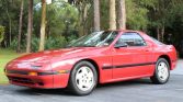 This 1986 Mazda RX-7 GXL is finished in red over maroon upholstery and is powered by a 1.3-liter Wankel rotary paired with a four-speed automatic transmission. The GXL trim package includes a limited-slip differential, 15” alloy wheels, air conditioning, a power sunroof, power windows, power mirrors, cruise control, a rear wiper, power-assisted steering, and an AM/FM cassette stereo with a graphic equalizer.
