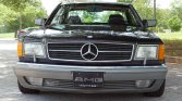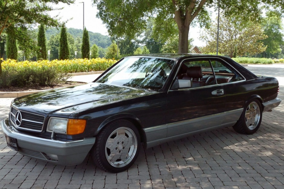 This 1986 Mercedes-Benz 560SEC spent time in Georgia before its acquisition by the current owner in 1994, who subsequently placed the car in storage from 2015 through 2019. It is powered by a 5.5-liter V8 paired with a four-speed automatic transmission and is finished in Blue-Black Metallic over Medium Red leather. Additional equipment includes chrome-clad 17″ AMG monoblock wheels, power-adjustable heated front seats, cruise control, and a Becker cassette stereo.