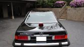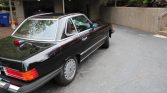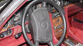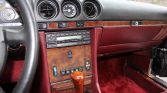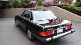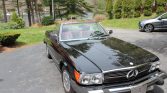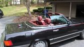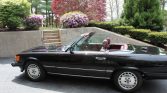 This 1986 Mercedes-Benz 560SL is finished in black with red pinstripes over a red leather interior, and it is powered by a 5.5-liter V8 paired with a four-speed automatic transmission. Equipment includes a black convertible top, a body-color removable hardtop, fog lamps, 15″ alloy wheels, automatic climate control, cruise control, power windows, central locking, and a Becker Grand Prix cassette stereo with Bluetooth connectivity. The car spent time in several states prior to its acquisition by the seller…
