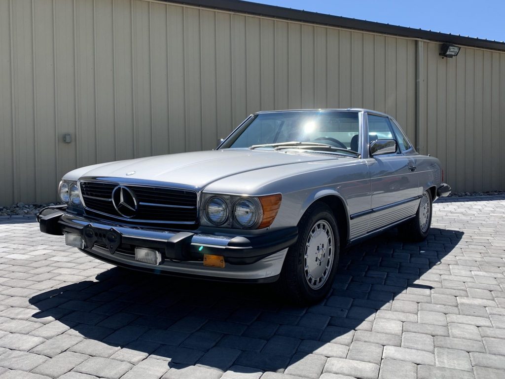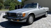 This 1986 Mercedes-Benz 560SL is finished in metallic silver over blue leather and powered by a 5.5-liter V8 paired with a four-speed automatic transmission. Equipment includes a dark blue soft top, a body-colored hardtop, 15” gullideckel wheels, automatic climate control, and a Becker stereo. The car was first registered in Texas and later spent time in California, Connecticut, and New Jersey before it was recently acquired by the seller.