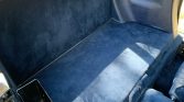 The interior features seats trimmed in blue leather (262) with matching carpets and door panels as well as burl wood trim on the center console and dashboard. Additional equipment includes a leather-wrapped airbag steering wheel, automatic climate control, cruise control, an ambient temperature gauge, and a Becker Grand Prix stereo. The wood trim on the shifter surround is cracked.