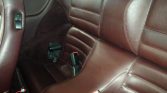 The cabin features Burgundy leather seats with power height adjustments as well as a matching dashboard, door panels, and carpets. Equipment includes power windows, air conditioning, a digital clock, cruise control, and an aftermarket Pioneer CD stereo.