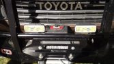 Steel 16″ wheels are mounted with 285/75 BFGoodrich All-Terrain tires. Aisin manually locking hubs are fitted up front, and braking is handled by power-assisted front discs and rear drums. The braking system was overhauled in 2007 by TLC, at which point Old Man Emu suspension components and steering stabilizer were installed.