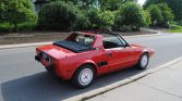 This 1987 Bertone X1/9 is finished in red over black and tan upholstery and powered by a 1.5-liter inline-four mated with a five-speed manual transaxle. Modifications consist of a Midwest-Bayless Italian Auto cylinder head with a performance camshaft and competition valve springs, as well as LED lighting, a Blaupunkt stereo, 13″ OZ Racing wheels, and a Vick Autosports header and adjustable coilover suspension. The car spent time in California and Michigan before the seller’s father acquired it in 2015 and subsequently moved it to Wisconsin.