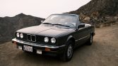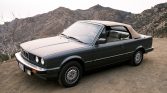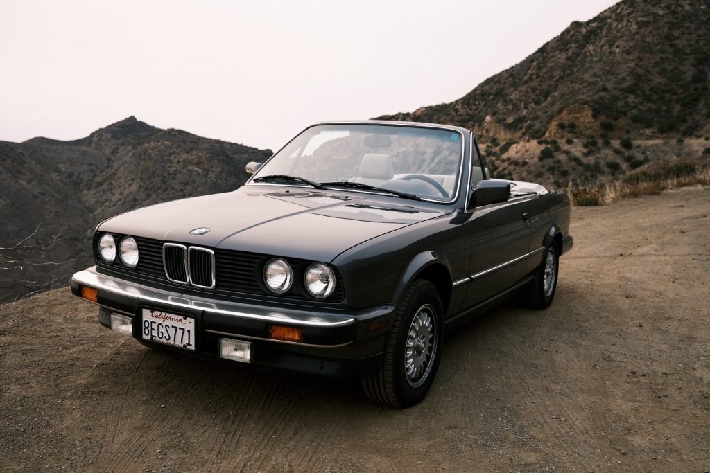 This 1987 BMW 325i convertible is finished in Delphin Metallic over tan vinyl upholstery and is powered by a 2.5-liter inline-six paired with a four-speed automatic transmission. Equipment includes a tan convertible soft top, 14” alloy wheels, air conditioning, an onboard computer, power windows, and a factory cassette stereo.