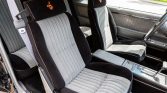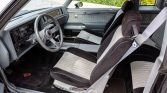 The cabin is equipped with a gray dashboard and door panels along with contrasting black carpets. The seats are trimmed in black and gray cloth and the front buckets feature embroidered ‘turbo-six’ logos on the headrests. Amenities include air conditioning, a factory cassette radio, power accessories, and a power-adjustable driver’s seat.