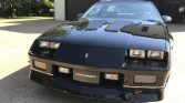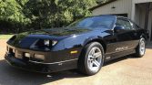 This 1987 Chevrolet Camaro IROC-Z is a black-over-gray coupe that was first delivered to Reichert Chevrolet & Buick in Illinois, and it is said to have remained with its original owner for 21 years and was purchased by the seller in 2018. The car is powered by an optional fuel-injected 5.7-liter V8 paired with a four-speed automatic transmission and a limited-slip differential, and additional equipment includes removable T-top roof panels, power windows and locks, air conditioning, cruise control, a power-adjustable driver’s seat, a Delco-Bose cassette stereo, 16″ alloy wheels, four-wheel disc brakes, fog lights, and front and rear spoilers.