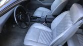 The cabin features seats upholstered in gray leather along with color-coordinated carpets and door panels. Amenities include a power-adjustable driver’s seat, air conditioning, cruise control, power windows and locks, an auto-dimming rear-view mirror, an overhead console, and a factory Delco-Bose cassette stereo.