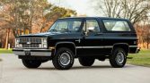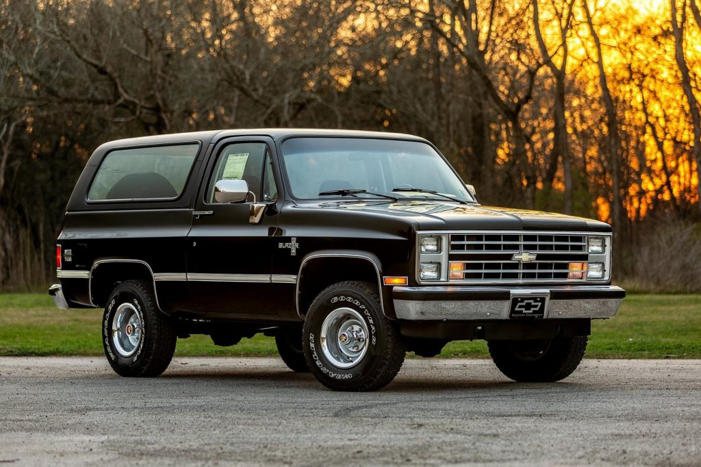 This 1987 Chevrolet K5 Blazer Silverado is finished in black over burgundy cloth and is powered by a fuel-injected 5.7-liter V8 mated to a four-speed automatic transmission and a dual-range transfer case. Equipment includes a removable black hardtop, deluxe front, and rear bumpers, the trailer package, a powered rear window, optional 15″ rally wheels, a full-size spare tire, automatic locking front hubs, air conditioning, high-back bucket seats, a folding rear seat, and a Delco cassette stereo. The truck spent time in Massachusetts and was acquired by the current owner and relocated to Texas in February 2014.