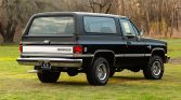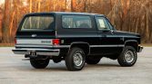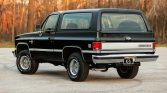 This 1987 Chevrolet K5 Blazer Silverado is finished in black over burgundy cloth and is powered by a fuel-injected 5.7-liter V8 mated to a four-speed automatic transmission and a dual-range transfer case. Equipment includes a removable black hardtop, deluxe front, and rear bumpers, the trailer package, a powered rear window, optional 15″ rally wheels, a full-size spare tire, automatic locking front hubs, air conditioning, high-back bucket seats, a folding rear seat, and a Delco cassette stereo. The…