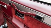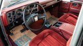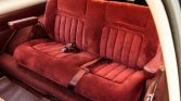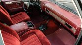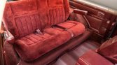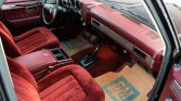 The cabin features burgundy cloth upholstery joined by a matching dashboard and door panels. Equipment includes a Delco Cassette Stereo, air conditioning, a locking center console, rubber floormats, high-back front bucket seats, and a folding rear bench seat.