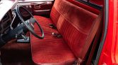 The bench seat is upholstered in burgundy cloth with vinyl sides. Appointments include air conditioning, a cassette stereo, and power windows and door locks.