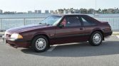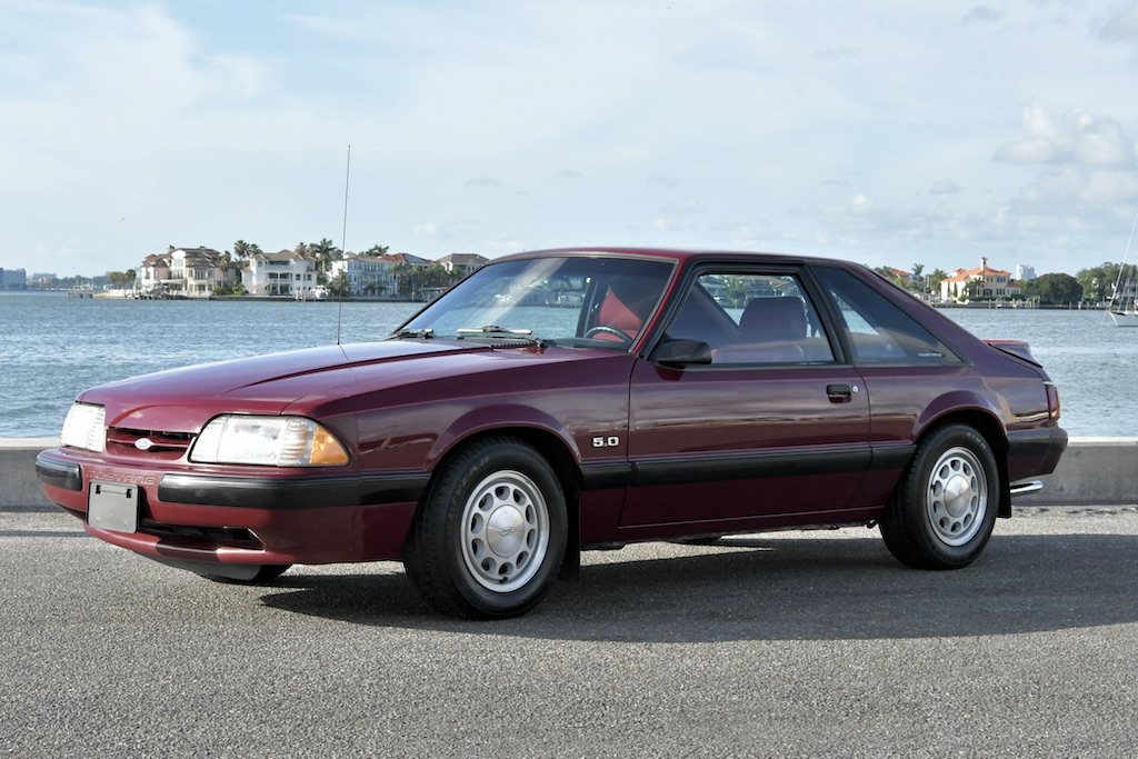 This 1987 Ford Mustang LX hatchback is finished in red over red cloth upholstery and powered by a 302ci V8 mated to a five-speed manual transmission. Features include a rear spoiler, 15″ aluminum wheels, a Traction-Lok limited-slip differential, an aftermarket cassette stereo, and polished dual exhaust outlets. The car was first registered in Alabama and spent time in Ohio before it was acquired by the seller in June 2021.
