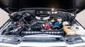 The replacement carbureted 360ci V8 was installed in 2017 and features an Edelbrock air cleaner assembly, black-painted valve covers, and a Davis Unified Ignitions ignition distributor. The engine mounts, fuel pump, water pump, radiator hoses, thermostat, EGR valve, spark plugs, and ignition wires were also changed in 2017.