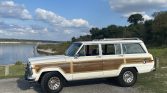 This 1987 Jeep Grand Wagoneer is said to have been delivered new to Herbert Motors in Longmont, Colorado, and spent several years in Texas before being acquired by the seller in 2021. The truck is finished in beige with with woodgrain paneling over maroon leather upholstery and is powered by a 5.9-liter V8 mated to a three-speed automatic transmission and a dual-range transfer case. Equipment includes LED headlights, driving lights, a roof rack, cruise control, air conditioning, a power-retractable rear window, and an aftermarket head unit that features a backup camera and Bluetooth.