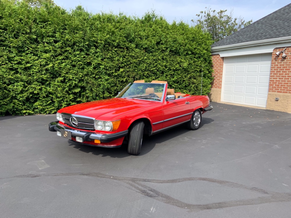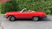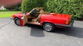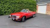 This 1987 Mercedes-Benz 560SL has 17k miles and was purchased by the seller in New Jersey in 1991 before being relocated to Pennsylvania. The car is finished in Signal Red over Palomino leather and is powered by a 5.5-liter V8 paired with a four-speed automatic transmission. Equipment includes a black soft top, a body-color removable hardtop, chrome 15″ wheels, automatic climate control, power windows, central locking, and a Becker cassette radio.