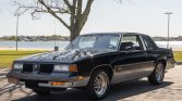 This 1987 Oldsmobile Cutlass 442 was delivered new to Park Motors, Inc. of Fairhaven, Massachusetts and was recently acquired by the selling dealer from the original owner. Power comes from a 5.0-liter V8 paired with a four-speed automatic transmission, and the car is finished in black and silver over a gray fabric interior. Features include air conditioning, a power-adjustable driver’s seat, a Delco AM/FM cassette stereo, cruise control, power-assisted steering, electric windows, and chrome 15″ Super Stock III wheels with gold aLents.