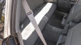 The cabin features front bucket seats and a rear bench trimmed in gray fabric with a matching dashboard, door panels, and carpets. Shoulder belts are fitted for front-seat oLupants, and amenities include a power-adjustable driver’s seat, a Delco AM/FM/cassette stereo, an aftermarket alarm system, air conditioning, power steering, and electric windows.