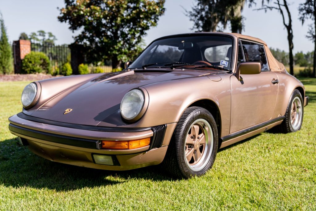 This 1987 Porsche 911 Carrera cabriolet was purchased by the seller’s father-in-law in 1989 from its first owner in California, and it was acquired by the seller and relocated to North Carolina in 1999. The car is finished in Nougat Brown Metallic over brown upholstery and is powered by a 3.2-liter flat-six mated to a G50 five-speed manual transaxle. Equipment includes a Mahogany soft top with matching top boot, 15″ Fuchs wheels, fog lights, air conditioning, power-adjustable front seats, cruise control, and a Sony CD stereo.