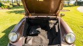 The car is finished in Nougat Brown Metallic (L40B) and features a Mahogany soft top with a matching top boot. Additional equipment includes fog lights, body-color side mirrors, rear bumperettes, and a third brake light. The hood and the left fender were refinished in 1991.