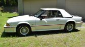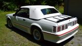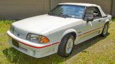This 1988 Ford Mustang GT convertible was ordered new by the seller from DeStefano Ford Sales of Barrington, Rhode Island in November 1987, delivered in March 1988, and driven until 1991, when it was put into storage for 21 years. Finished in white with a white convertible top over white leather upholstery, the car is powered by a 302ci V8 paired with a five-speed manual transmission. Equipment includes a limited-slip differential, fog lights, air conditioning, sport seats, cruise control, 15″ alloy wheels, power window, an AM/FM/cassette stereo, and a luggage rack.