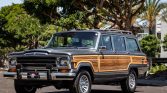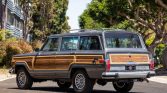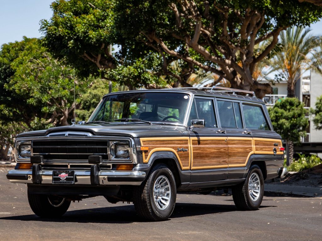 This 1988 Jeep Grand Wagoneer is finished in Dover Gray Metallic over burgundy upholstery and is powered by a 360ci V8 mated to a three-speed automatic transmission and a dual-range transfer case. Equipment includes faux wood panelling, fog lights, a roof rack, an electric sunroof, cruise control, air conditioning, and a cassette player. The truck was acquired by the seller in 2021, and service in preparation for the sale is said to have included an oil change along with replacement of the front brake pads, rotors, hoses, and fluid.