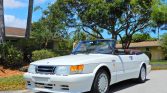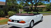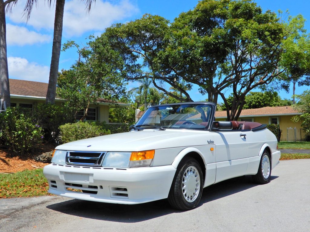 This 1988 Saab 900 Turbo Convertible was delivered new to SAAB South in Lighthouse Point, Florida, and was acquired by the seller in 1994. The car is finished in Cirrus White over burgundy leather and is powered by a turbocharged 2.0-liter inline-four paired with a five-speed manual transaxle. Equipment includes 15″ alloy wheels, a black soft top, an aerodynamic body kit, and a Clarion stereo system. Recent service reportedly included changing the oil and replacing the shocks.