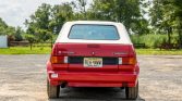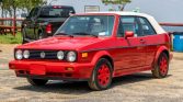 This 1988 Volkswagen Cabriolet is finished in red over white cloth and is powered by a 1.8-liter inline-four mated to a three-speed automatic transaxle. Equipment includes a white soft top, air conditioning, cruise control, power steering, body-color 13″ alloy wheels, and a factory AM/FM cassette stereo. The car was first registered in New York, where it was reportedly purchased from the original owner by the seller in June 2021, and subsequently moved to New Jersey.