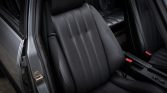 The cabin is upholstered in black and the heated front sport seats wear replacement leather covers. Equipment includes power windows, dual-zone climate control, floor mats, an aftermarket six-speed shift knob, and an aftermarket Kenwood head unit.