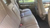 The cabin features seats upholstered in beige lather with matching door panels and carpeting protected by rubber floor mats. Equipment includes air conditioning, wood dashboard trim, and power seats as well as power windows, mirrors, and door locks.